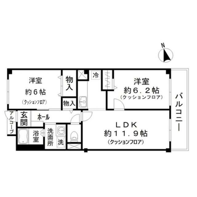 | 間取り | 2LDK(LDK11.9洋室6.2洋室6) | 主要採光面 | 東 |
