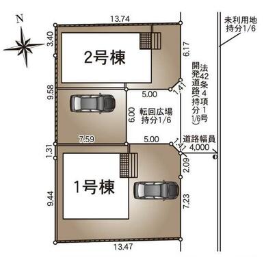 | 土地面積 | 公簿 142.19㎡ | 私道負担面積 | 294.00㎡ 共有持分 1/6 |